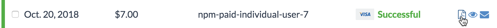 To view a single receipt, find the row of the receipt you want to view, then, on the right side of the row, click the view icon.